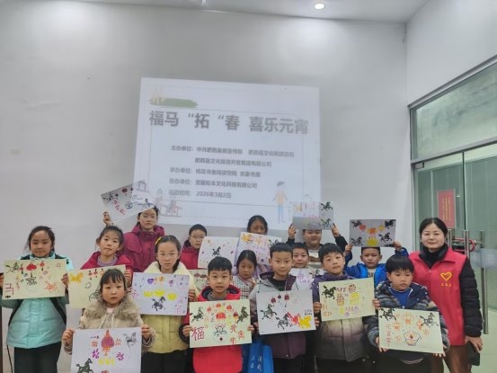 活动趣味徐徐展开;首先是“巧手画花灯”,孩子们在工作人员的指导下,用五彩画笔在画纸上勾勒出心中最美的元宵花灯。随后进入“童心绘元宵”环节,孩子们用彩笔描绘出一碗碗热气腾腾的元宵,有的还添上了笑脸、烟花元素,将节日的氛围定格在画纸上。最后是本次活动拓印福马环节——在工作人员的示范下,孩子们体验传统拓印技艺,奔腾的骏马图案跃然纸上,寓意着丙午马年的吉祥与祝福。活动现场气氛热烈,孩子们时而专注创作,时而兴奋地展示自己的作品。